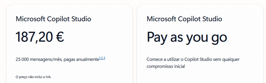 O Microsoft Copilot Studio está disponível em dois modelos principais de licenciamento: