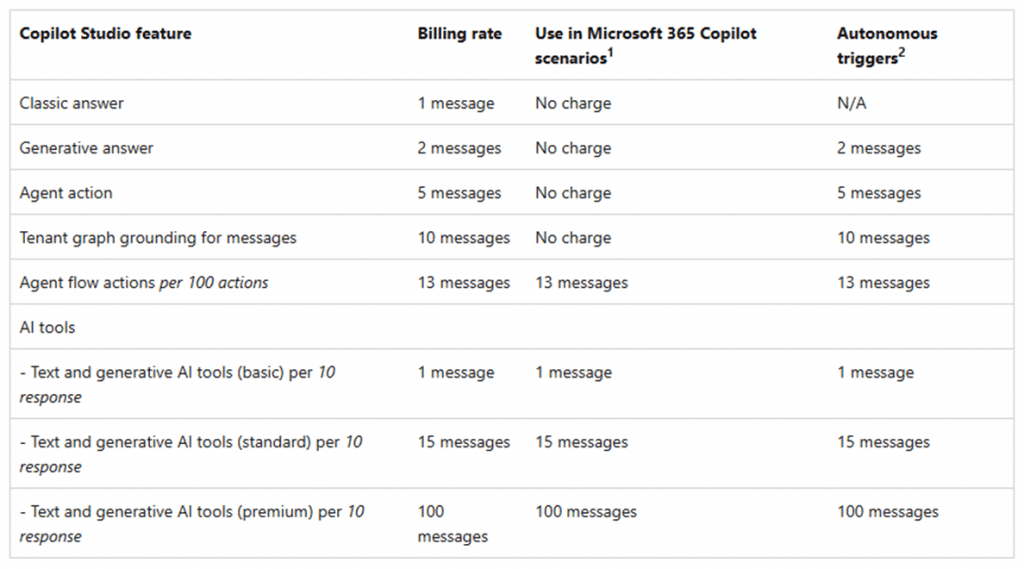 O Copilot utiliza um sistema de consumo baseado em “mensagens” para medir a utilização dos seus recursos. Cada ação ou resposta gerada através do Copilot Studio consome uma determinada quantidade de mensagens, que varia consoante o tipo de recurso utilizado e o contexto de utilização:
